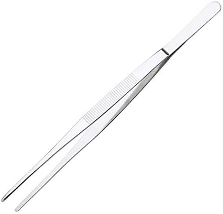12 Inch Tweezers Stainless Steel Straight Serrated Tip, Precision Cooking Plating Tweezer Tongs, Reptile Feeding Aquarium Aquascaping, Repairing Garden Craft Tool