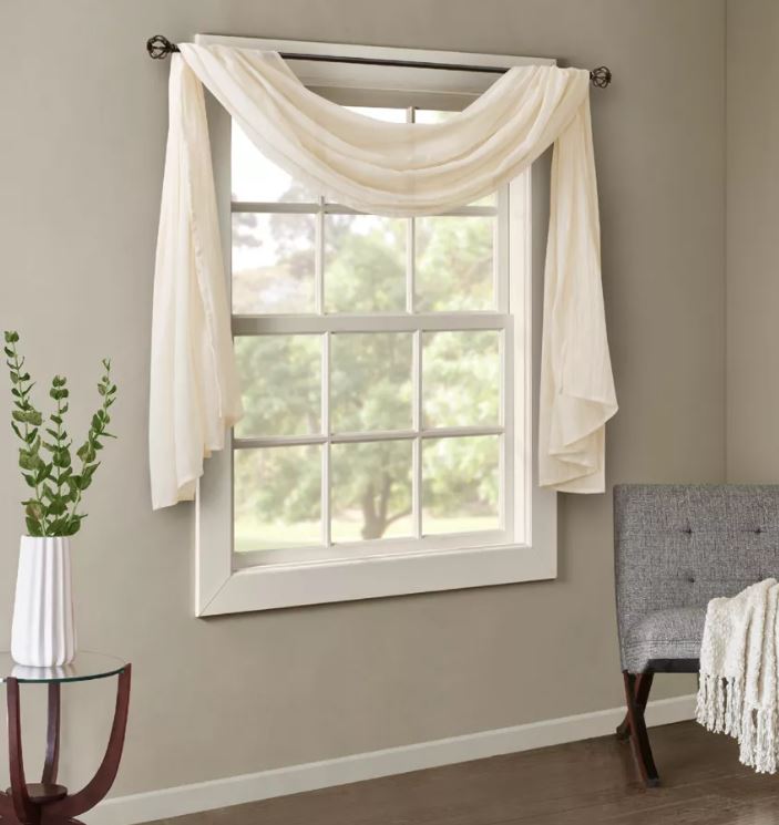 Soften the edges of your window, with Avery Solid Crushed Scarf Sheer. This lightweight sheer scarf features crushed detailing for beautiful texture, combined with a fresh color palette for the perfect touch of modern elegance. Four tabs are also included to make the DIY assembly easy so you can drape the scarf to best fit your window. For a complete look, layer this scarf with coordinating panels or prints in our collection for a more custom appeal.