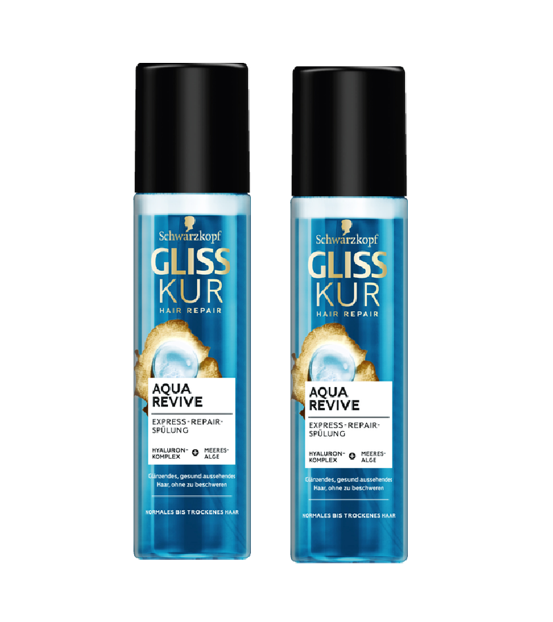 Does your hair sometimes feel dry and not smooth? Then it needs an extra dose of moisture for a healthy shine and a silky-soft, weightless feeling. Gliss Kur Aqua Revive offers: