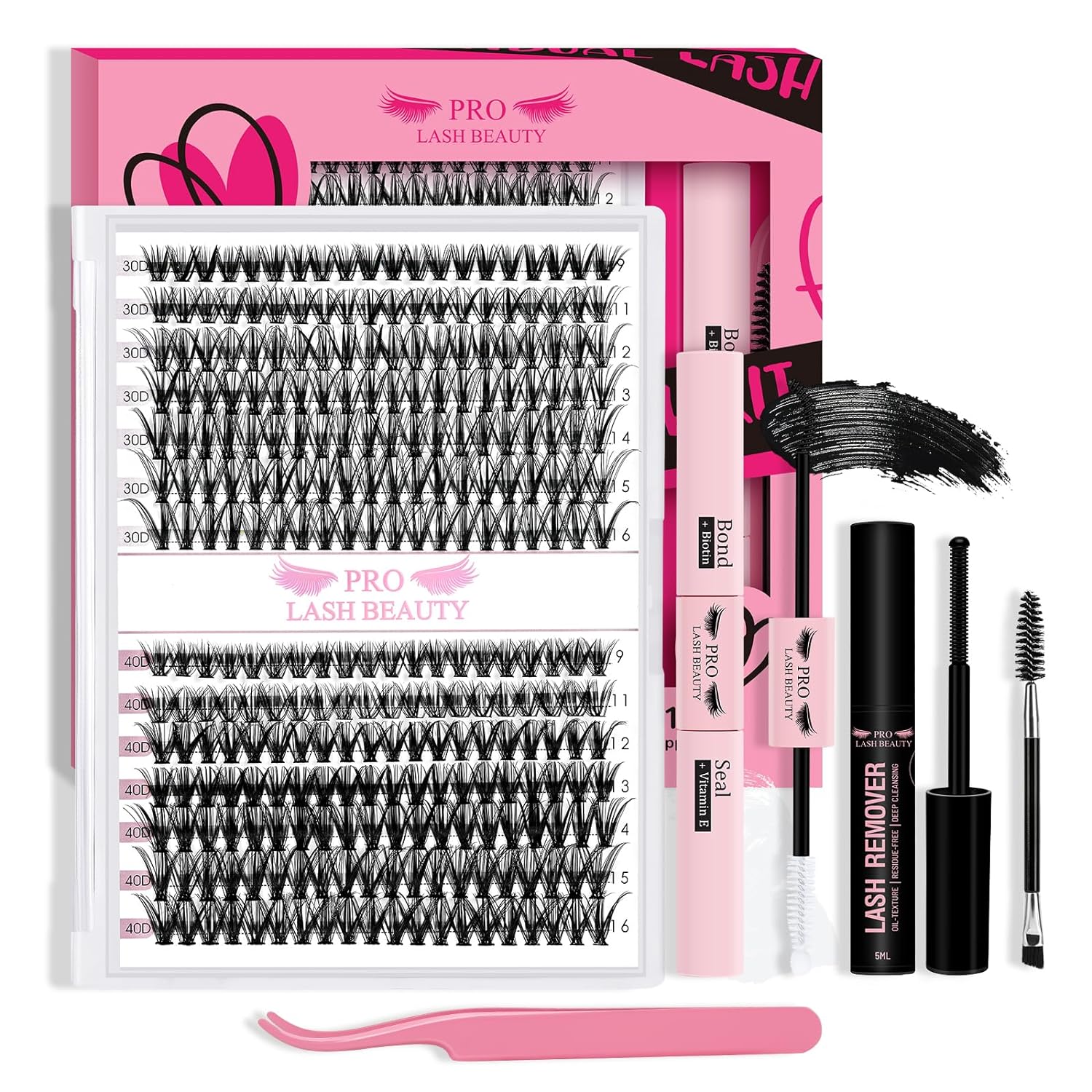 ______ Lash Extension Kit 280Pcs Lash Clusters Eyelash Extension Kit with Lash Bond and Seal Lash Remover Lash Applicator Individual Lashes Kit Eyelash Brush Easy to Apply at Home(30D+40D-9-16mix Kit)