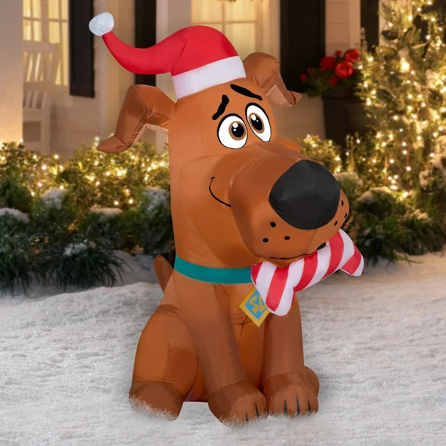 Airblown Inflatables 5 Foot Christmas Puppy SCOOB with Peppermint Bone WB