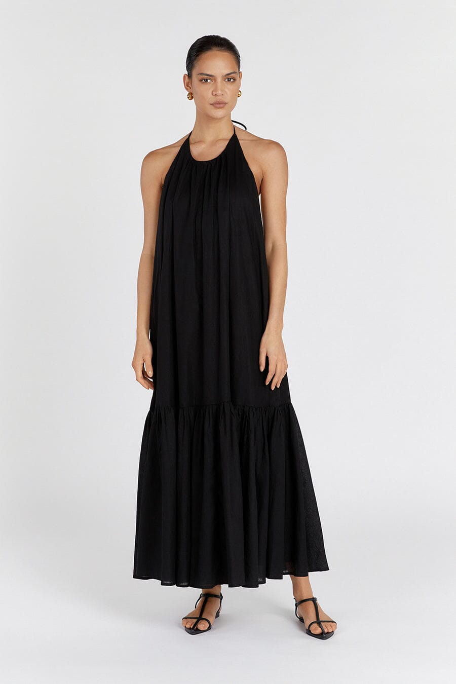 ARI BLACK LINEN HALTER MAXI DRESS