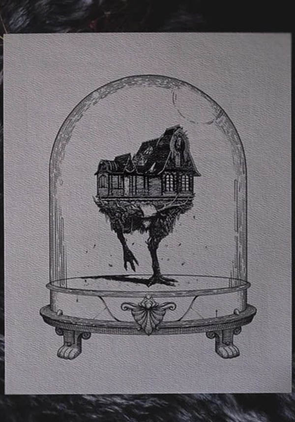 Baba Yaga, from classic Russian folklore. Baba Yaga was said to be a child-eating creature whom lived in a house on chicken legs.