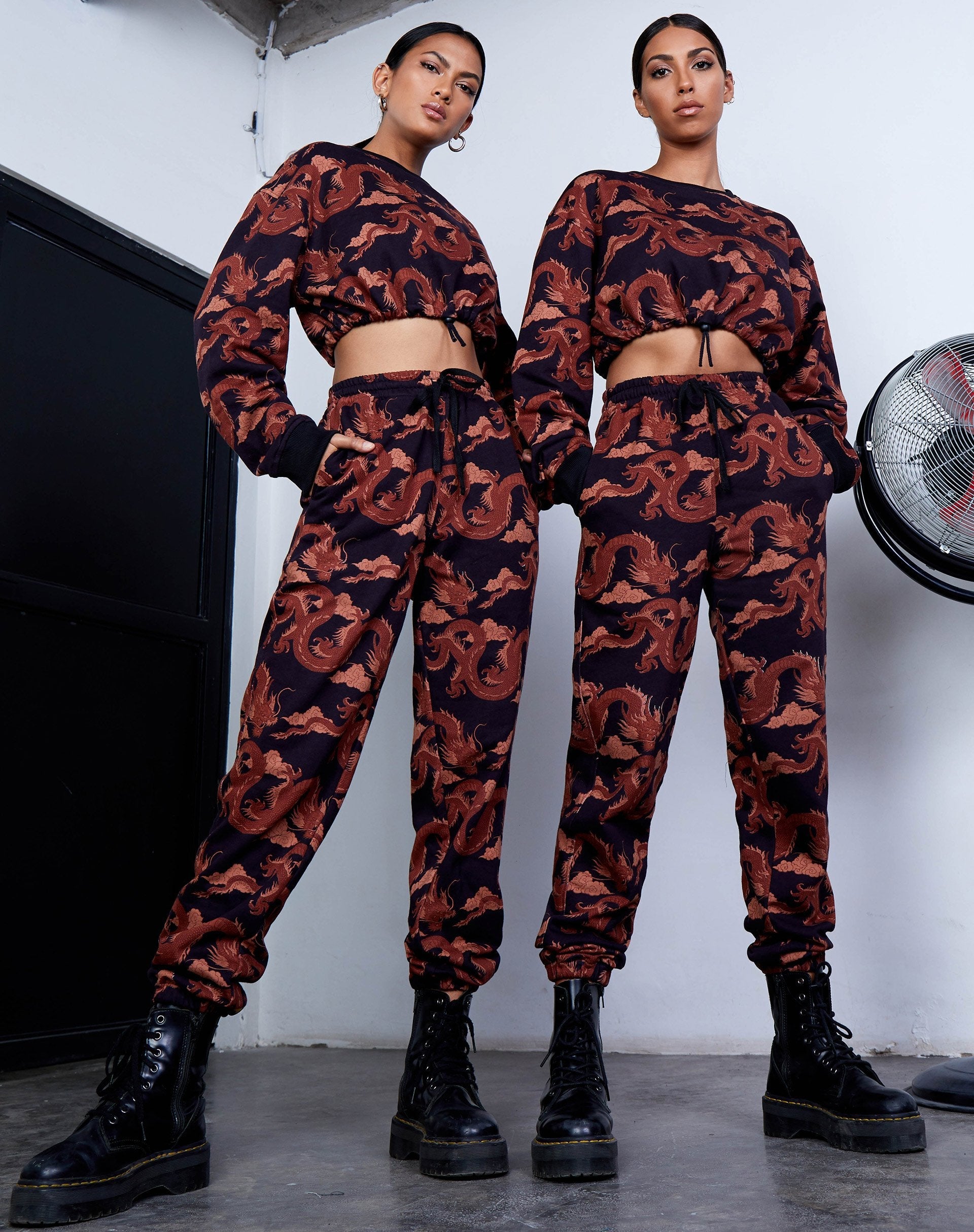 Comfort is key! Our Basta jogger features a high waisted loose fit with cuffed bottoms in an orange dragon print. Style with our matching Markey jumper for the ultimate co ord!