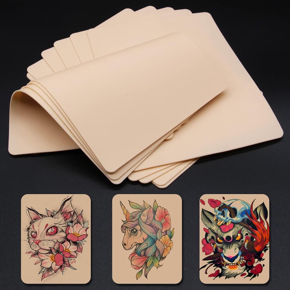 What's the Specifications of Tattoo Skin Practice? Condition: 100% New Material: Soft rubber Size: 8x6" Thickness: 0.04" (1.0MM) Colour: As picture show Packing: 10 x sheets of tattoo practice skin