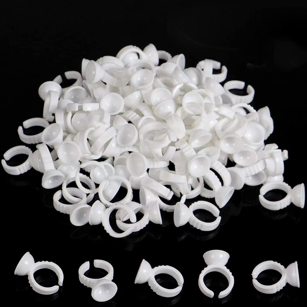 BTArtbox 300PCS Tattoo Rings Cups Disposable Glue Holder Plastic Tattoo Ink Pigment Ring Adhesive Makeup Rings Palette For Eyelash Extension Nail Art
