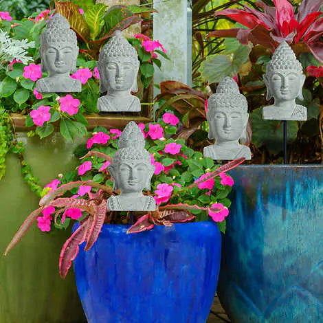 Add a spiritual and artistic touch to your planters or flower beds with these 5-pack Buddha Planter Stakes. Elevate your outdoor decor with this unique and eye-catching garden accessory.