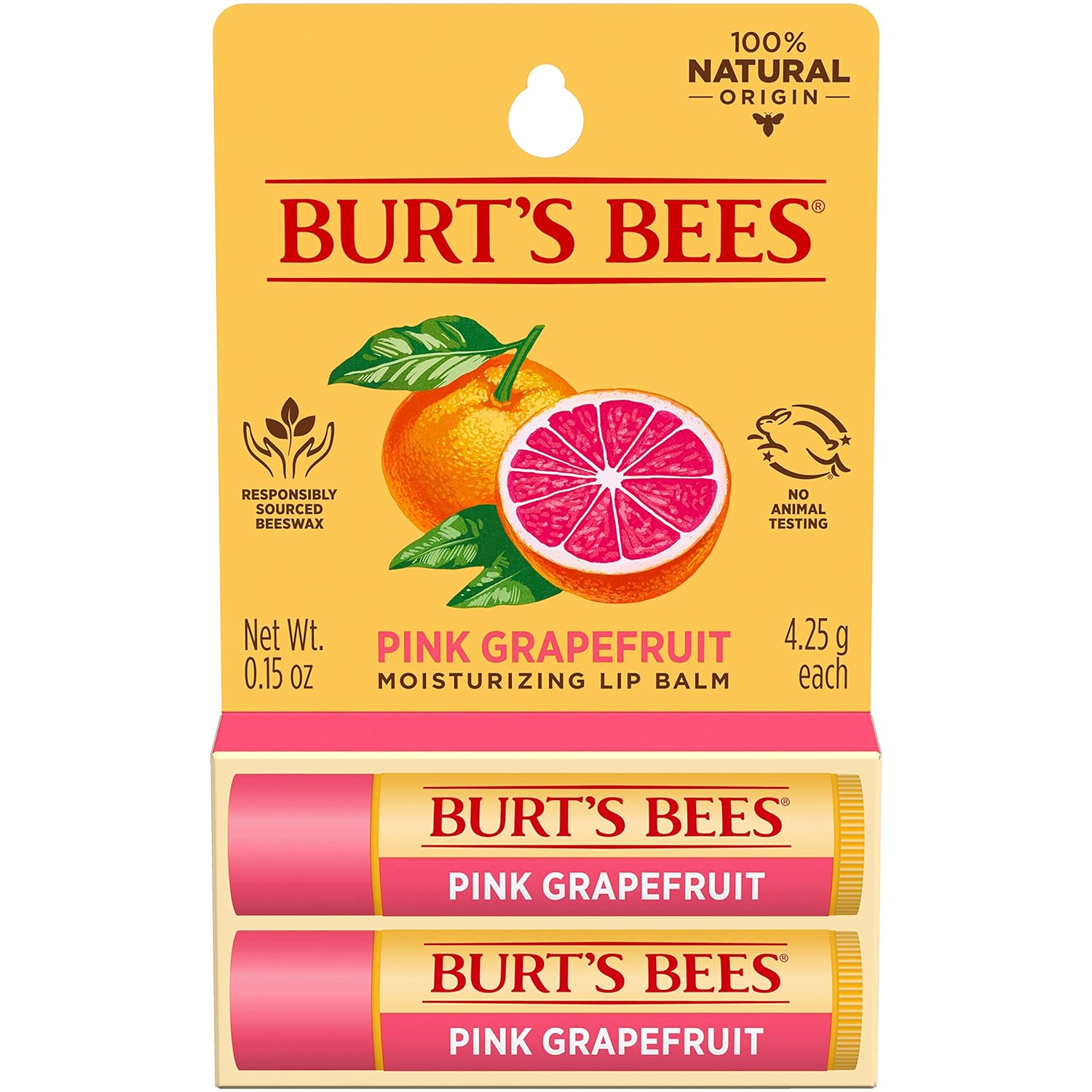Burt's Bees Pink Grapefruit Lip Balm, Lip Moisturizer With Responsibly Sourced Beeswax, Tint-Free, Natural Conditioning Lip Treatment, 2 Tubes, 0.15 oz.