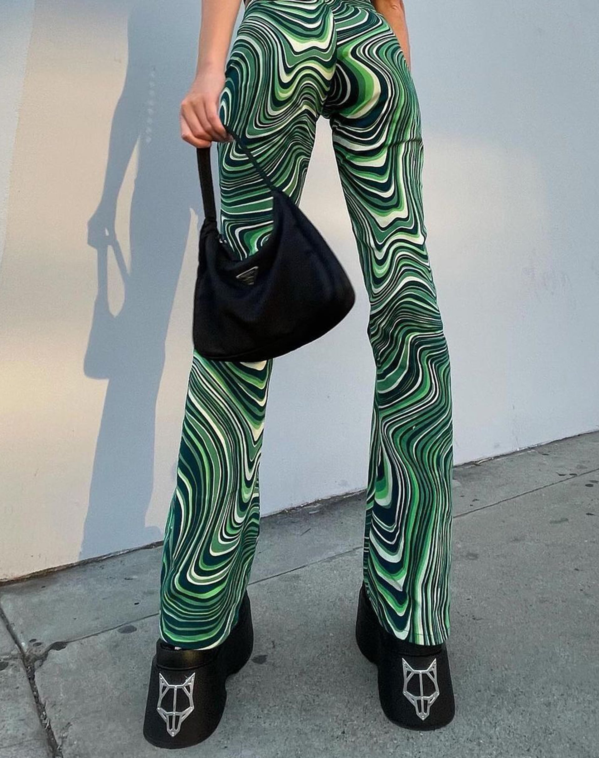 The coban trousers are the statement piece your wardrobe needs. Featuring a low rise fit with flared leg in a green 70’s ripple print. Style with our Shrunk tee in white hotter than hell.