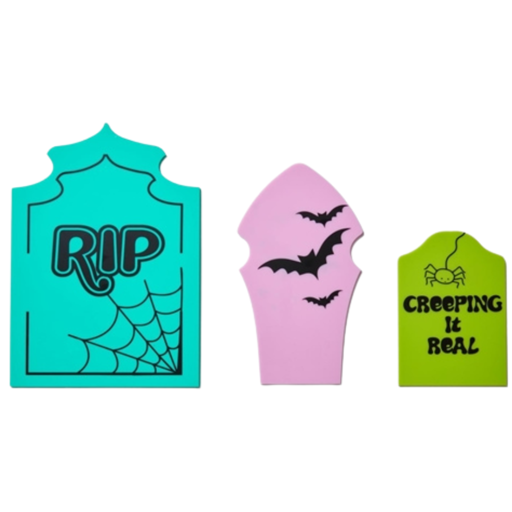 Add a pop of color to your Halloween home decor with these Colorful Acrylic Tombstones. Each set includes 3 acrylic pastel Halloween tombstone decorations in large medium and small sizes. Display them at your Halloween party or as Halloween decor for home!