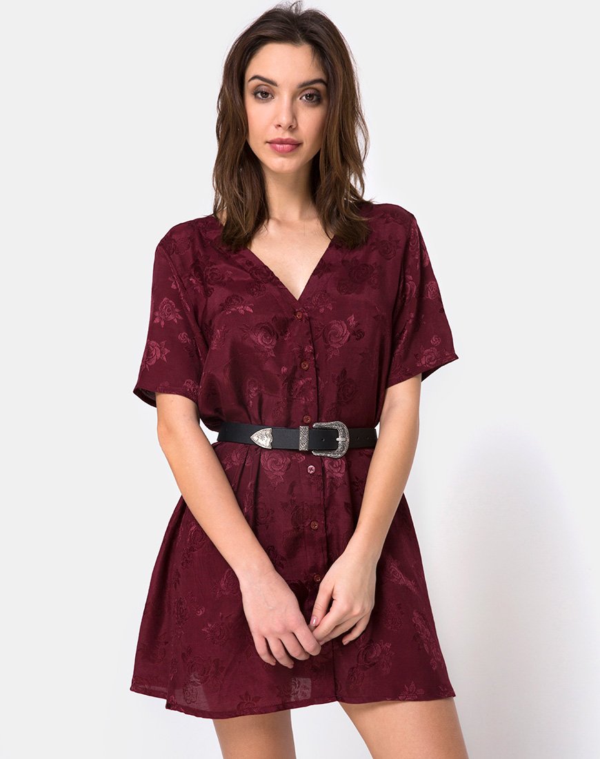 Crosena Swing Dress in Satin Burgundy Rose