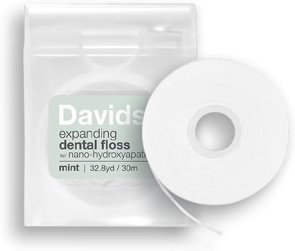 You can smile brighter knowing that Davids floss is meticulously designed for high performance. ItÕs woven 250+ strands of soft (yet gently scrubby) threads....and coated in smooth wax infused with cocoa butter and nano hydroxyapatite. The wax and cocoa butter allows the floss to glide smoothly between your teeth, and nano hydroxyapatite works to remineralize enamel in those hard-to-reach crevices. Davids floss is free of harmful PFAS, making it a safe dental floss for your whole family.