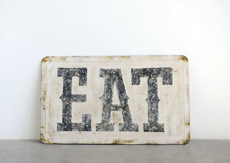 Great for your kitchen decor, this sign has a distressed finish for that antique decor. The lettering "EAT" are in large black lettering.