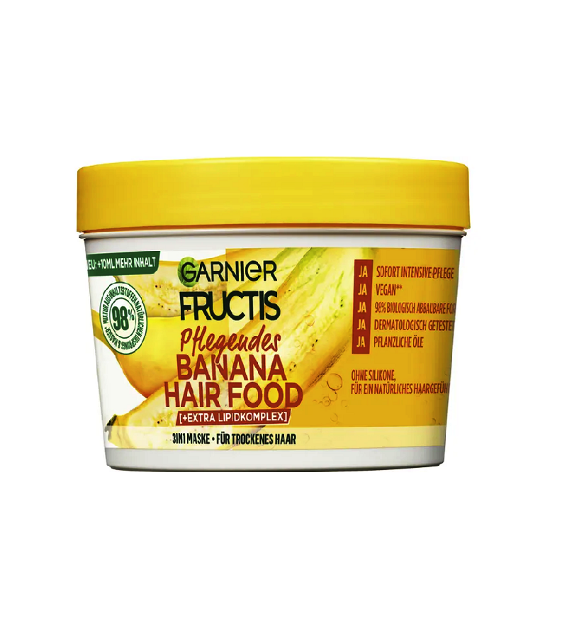 Garnier Fructis Nourishing Banana Hair Food was specially developed for dry hair that needs intensive care. The formula is enriched with banana to give the hair more suppleness. The 3-in-1 care can be used as a conditioner, mask or leave-in depending on your individual needs: its light texture is absorbed immediately and intensively nourishes dry hair without weighing it down. The vegan formula also consists of 98% ingredients of natural origin.