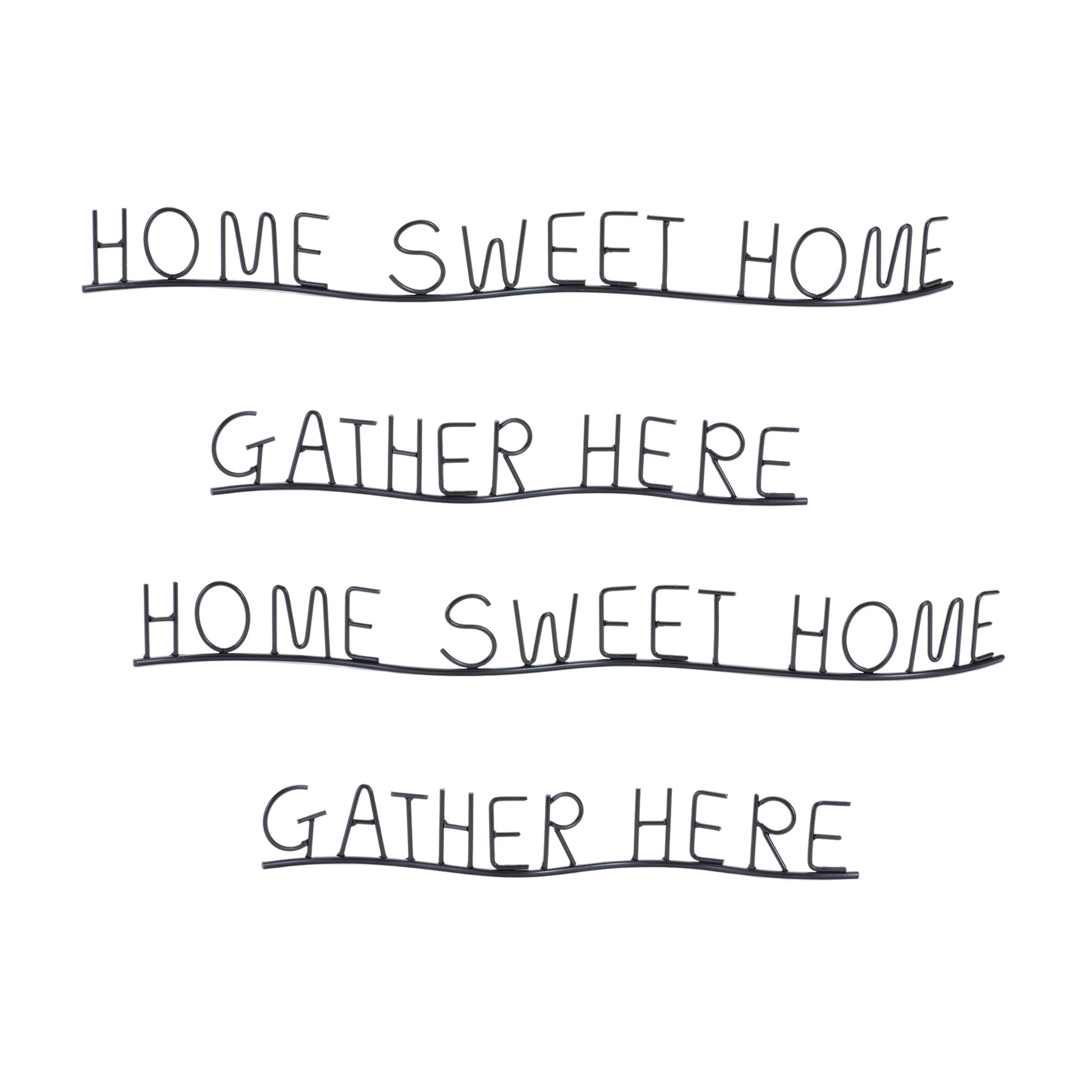 Welcome your guests in style with this beautiful Metal Sentiment Decor. Featuirng two assorted designs, the sentiments include "Home Sweet Home" and "Gather Here". The classic black finish paired with the modern design is the perfect combination to create a stunning display. The quality metal composition is sure to last for seasons to come. Display the pieces in your entryway or living room to share the sentiment with all.