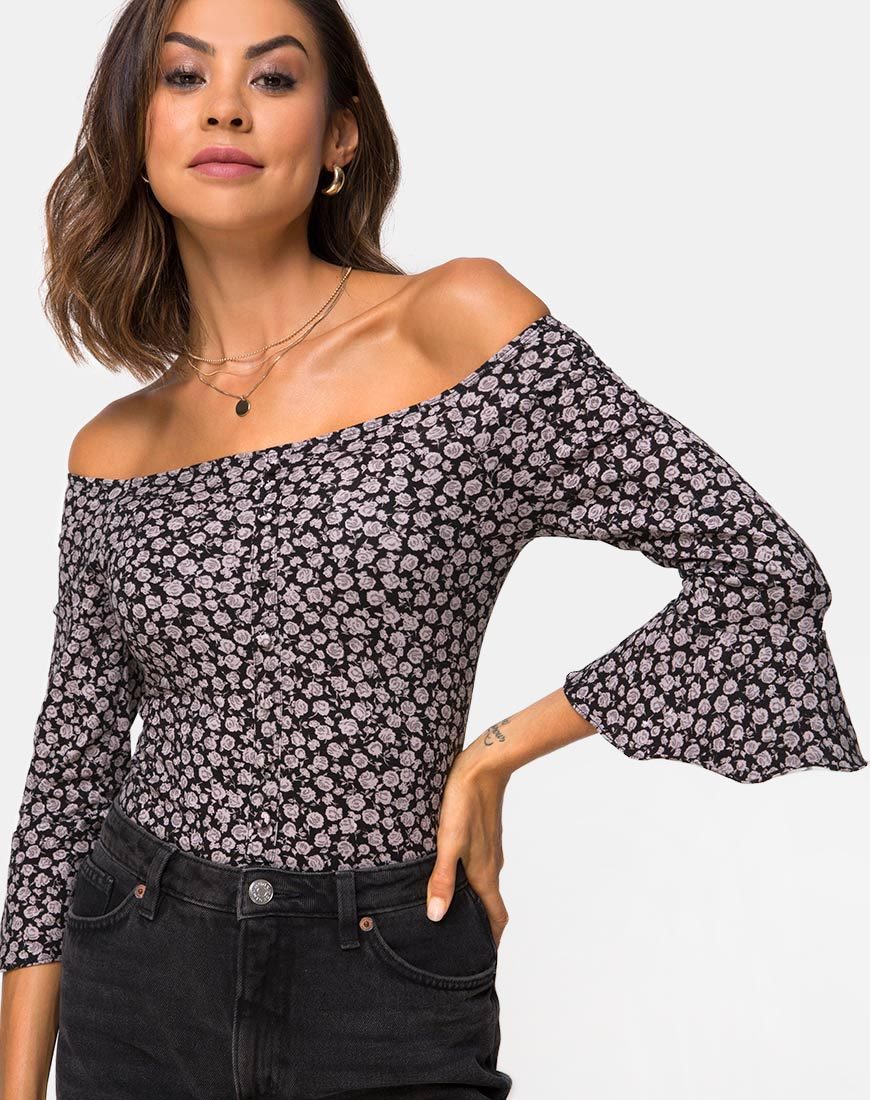 Florals are a must for every season! The fitted bardot style with fluted sleeves make a super cute outfit when paired with your fave pair of black mom jeans to add a grunge vibe!
