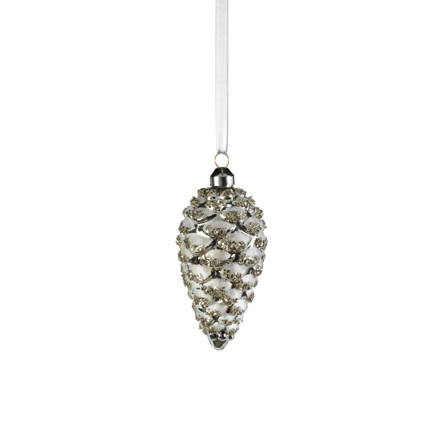 Glass Pine Cone Ornament - Silver