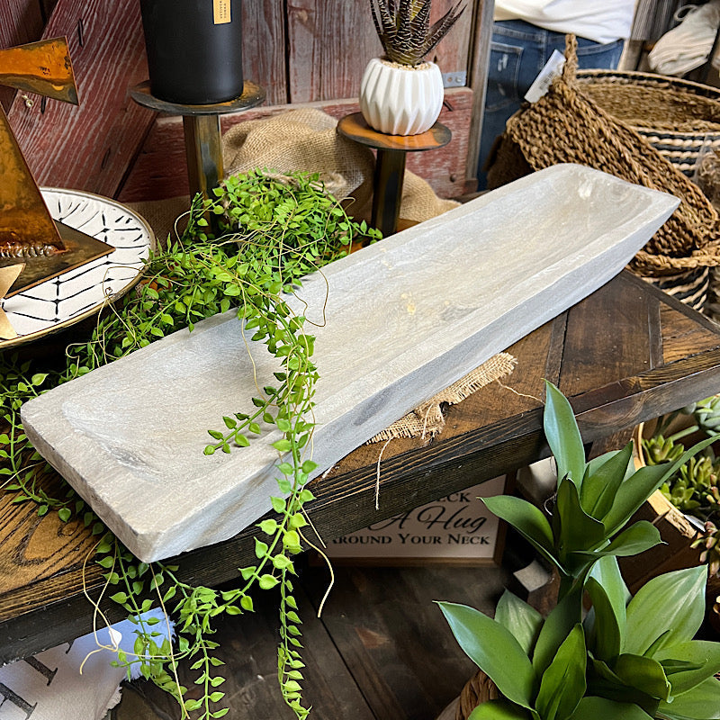 This tray is made of durable Paulownia wood and can be used for candles, food, and centerpieces.