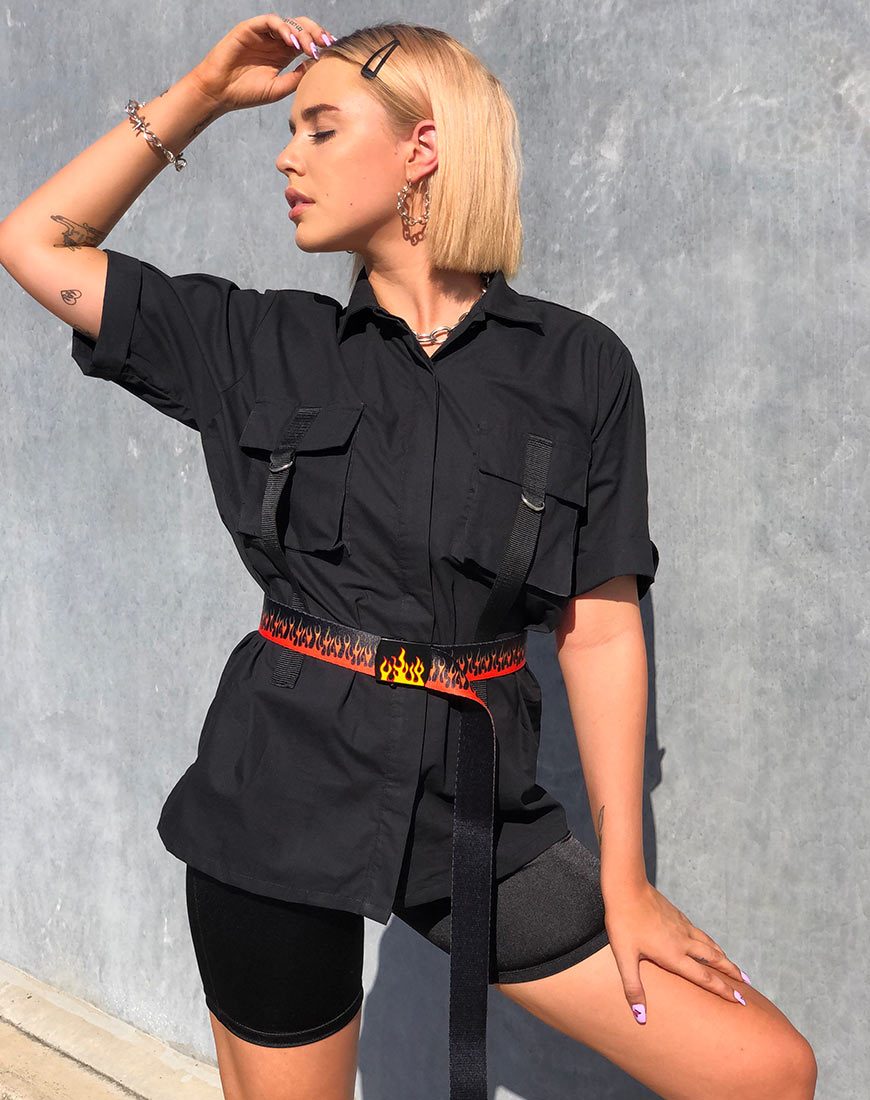 We are living for the utility style look. Take our Haimen shirt, the perfect stand out from the crowd piece. Featuring a loose oversized fit, long-line sleeves and button down front. Add a belt for a clinched waist and cycling shorts to complete the look.