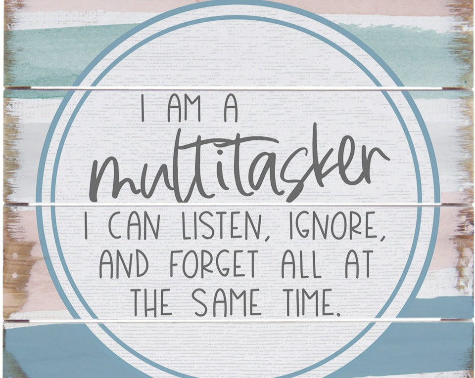 This sign has a very relatable quote that resonates with us " I am a multitasker, I can listen, ignore, and forget all at the same time." it is the perfect fit for the "multitasker" in all of us.