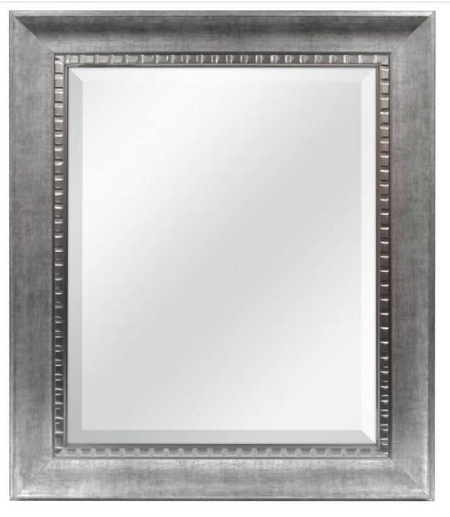 - he 3 inch wide frame has a brushed antique silver finish with silver dentil molded inner edge