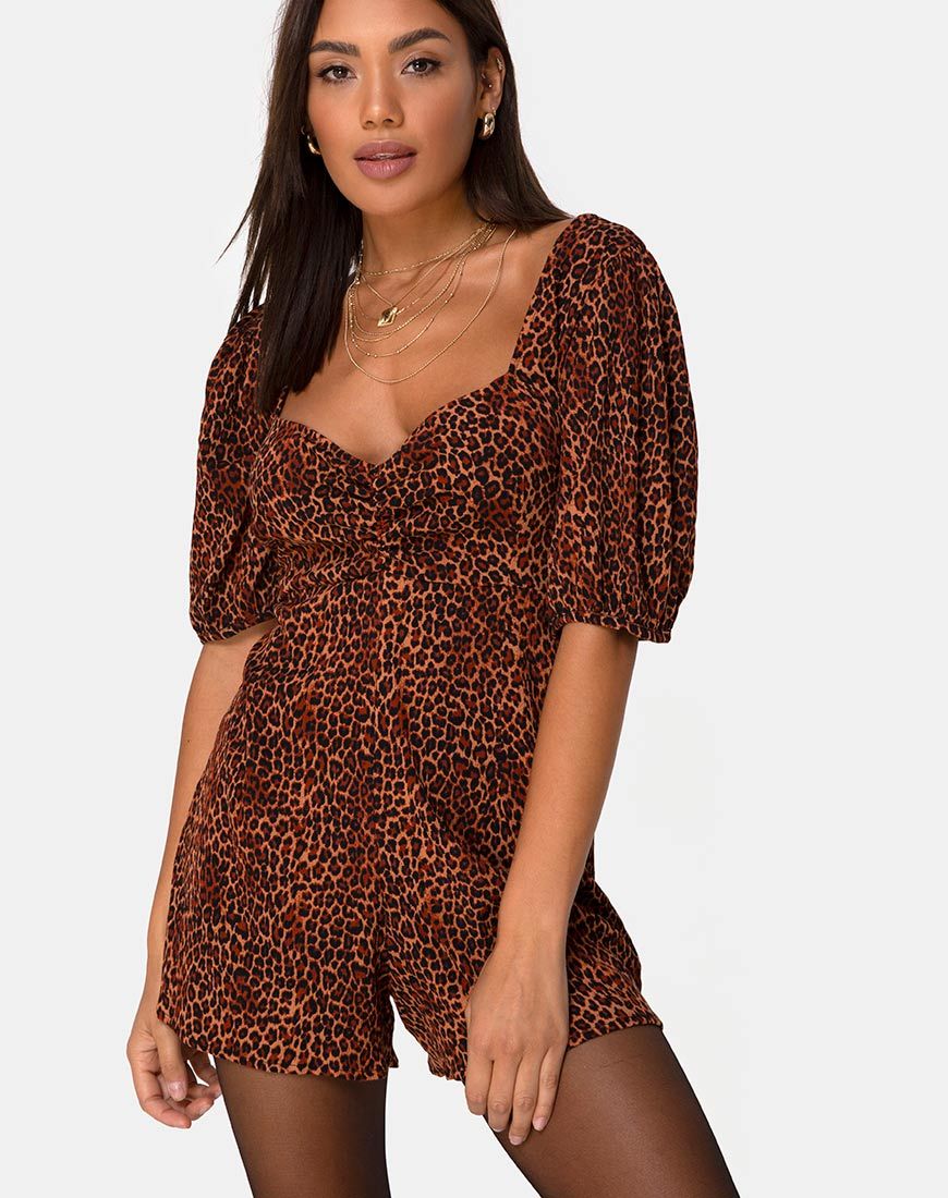 Monali Playsuit in Crinkle Ditsy Leopard Orange