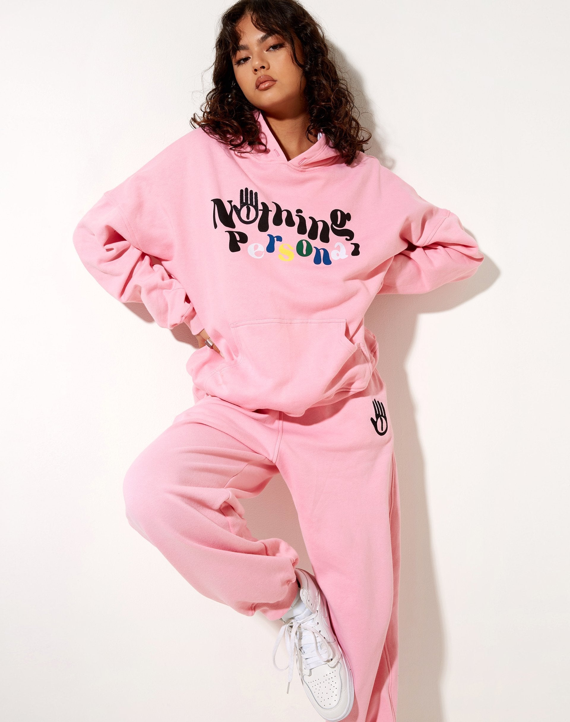 Add a pop of pink to your look with our Oversize hoodie. Featuring a loose oversized fit with hood, long sleeves and front pocket in a peony pink with “Nothing Personal” design. Match it up with the Roider joggers for a comfy co-ord.