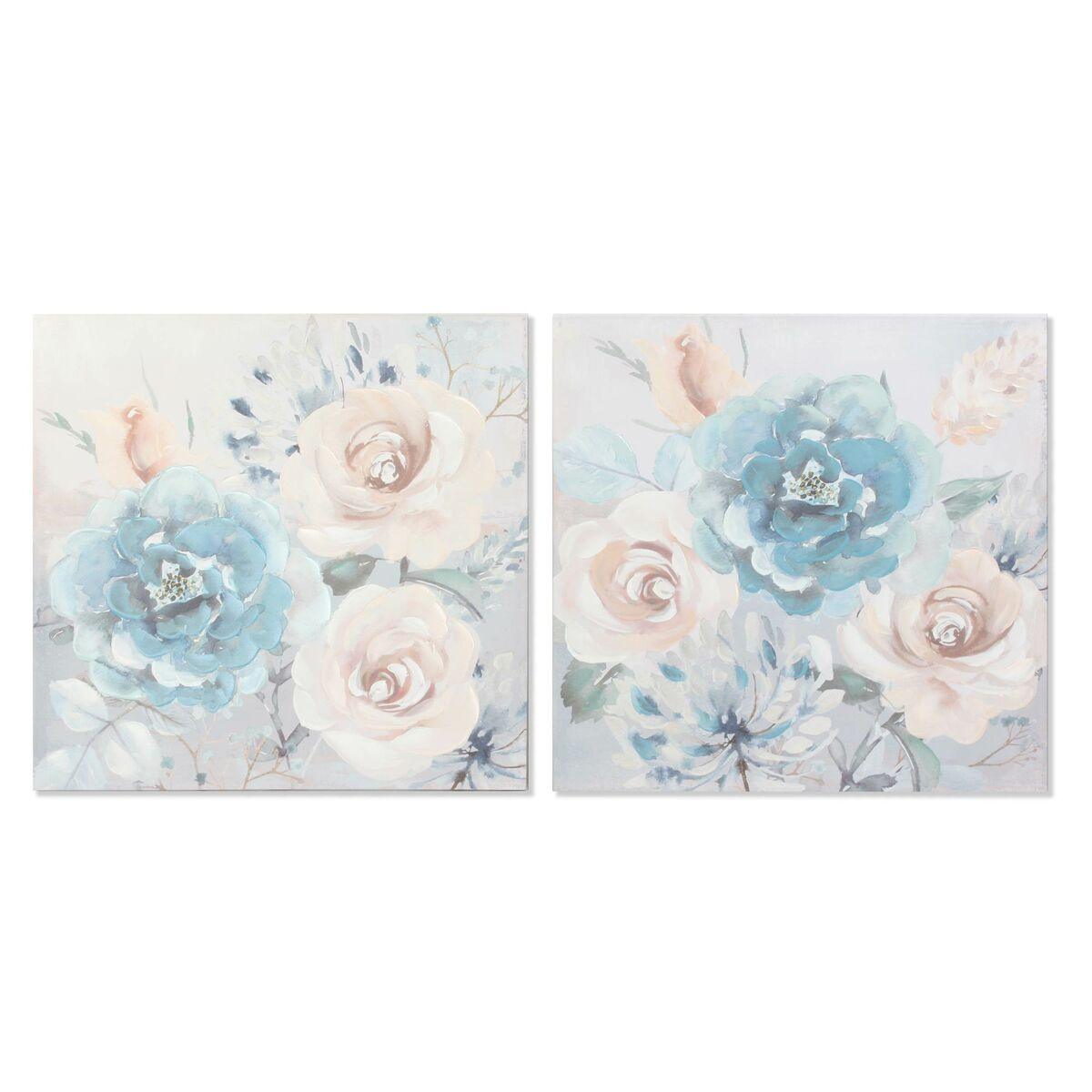 Painting DKD Home Decor 80 x 3 x 80 cm Flowers Shabby Chic (2 Units)