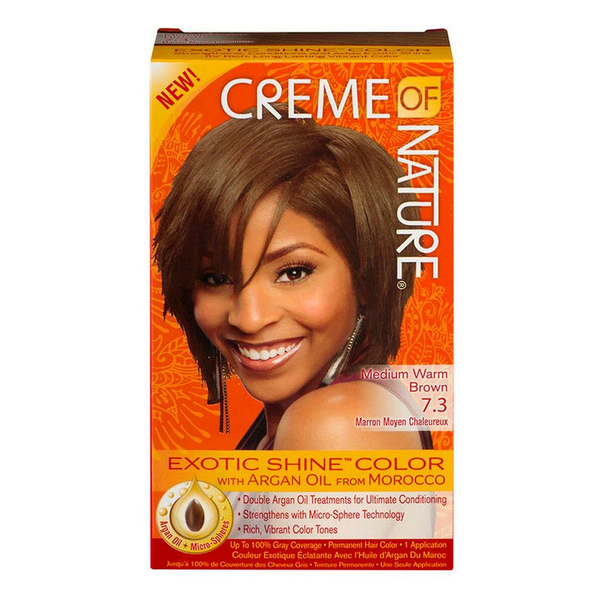 Want to enhance your image and highlight your beauty? Then the Permanent Dye Argan Color Creme Of Nature Medium Warn Brown 7.3 will help you to achieve your goals! Enjoy the benefits and advantages of Creme Of Nature products and other hairdressing accessories from 100% original brands.