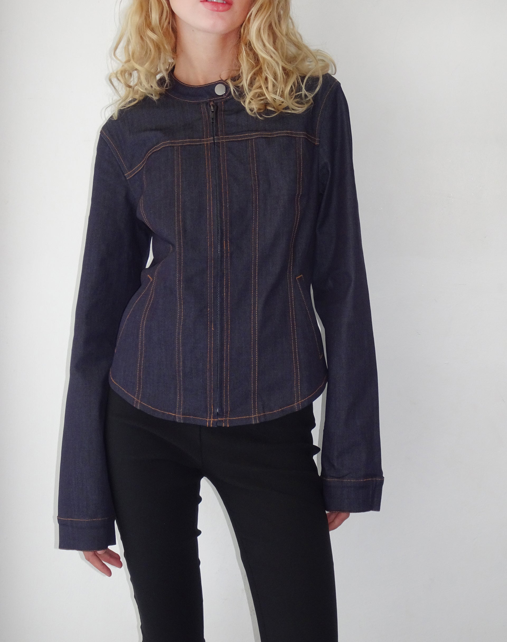 Your new favourite go-to jacket. In a denim-look tailored fabric, the Puria jacket features a fitted silhouette with long sleeves, a silver zip front and a high neckline with button clasp fastening. The perfect finishing touch to all your outfits.