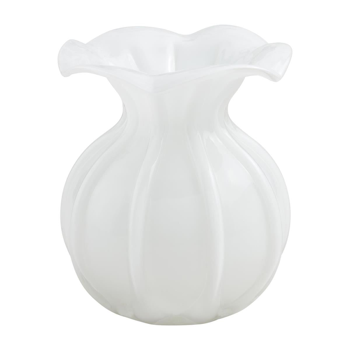 Enhance your home decor with our luxurious Ruffled Glass Vase. Made from opaque bulb glass, its ruffle rim adds a touch of elegance and sophistication to any space. Elevate your interior design with this exquisite piece that combines artful craftsmanship and functional storage.