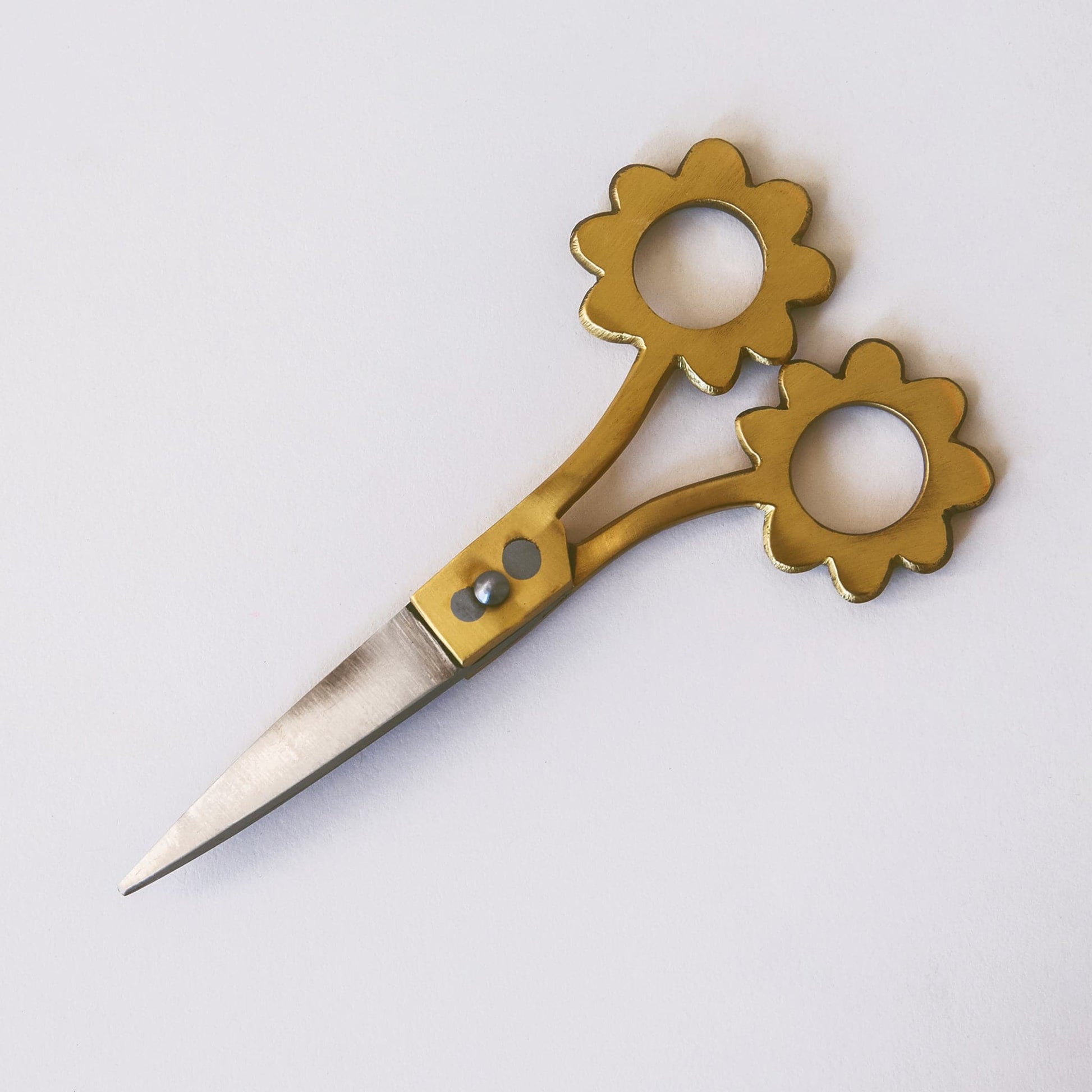 Luxe scissors made from premium-quality brass and stainless steel for a strong and durable construction. Its handles feature shiny brass flowers, adding a touch of glamour to any space.