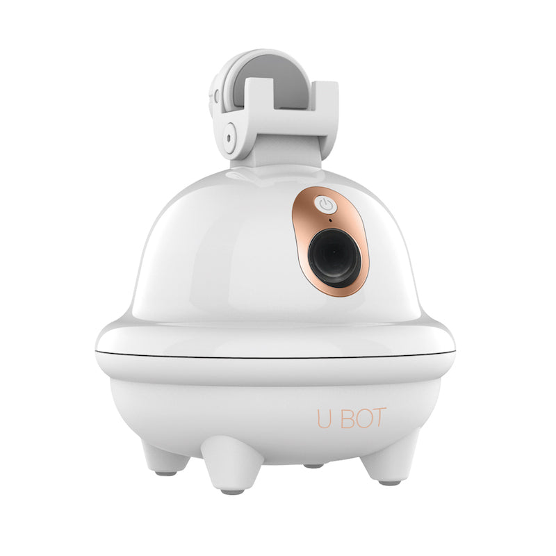 Camera bot with smart facial recognition that rotates 360˚ to capture your every movement. Simply mount your smartphone device onto the platform and turn it on. No app is needed.