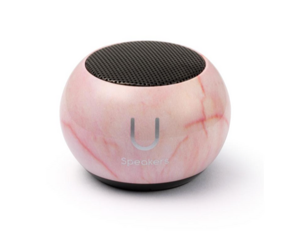 The perfect combination between a stationed speaker and one that can go with you everywhere! This mini speaker in pink marble is not only stylish but delivers exceptional sound.