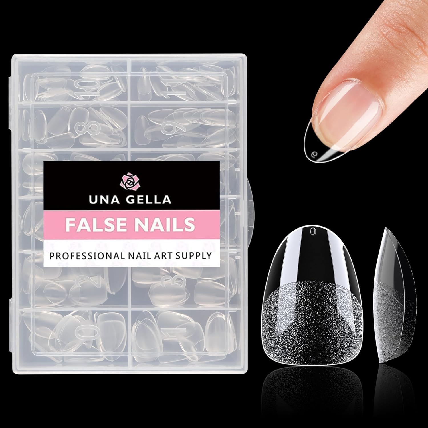 UNA GELLA Extra Short Almond Nail Tips Full Cover 216PCS Gel x Nail Tips Short Almond Shaped Nails Tips Soft Gelly Gel Clear Fake Nails Tip for Acrylic Nail Tip Soak Off Home DIY Salon Nails 12 Sizes