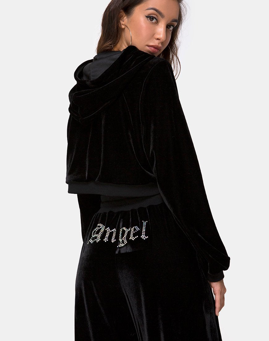 Release your inner angel in our diamante hotfix joggers. The perfect piece to add to your loungewear collection. Featuring a high waist, wide leg fit in black velvet. Team with our matching Bomb Hoodie for ultimate sass vibes.
