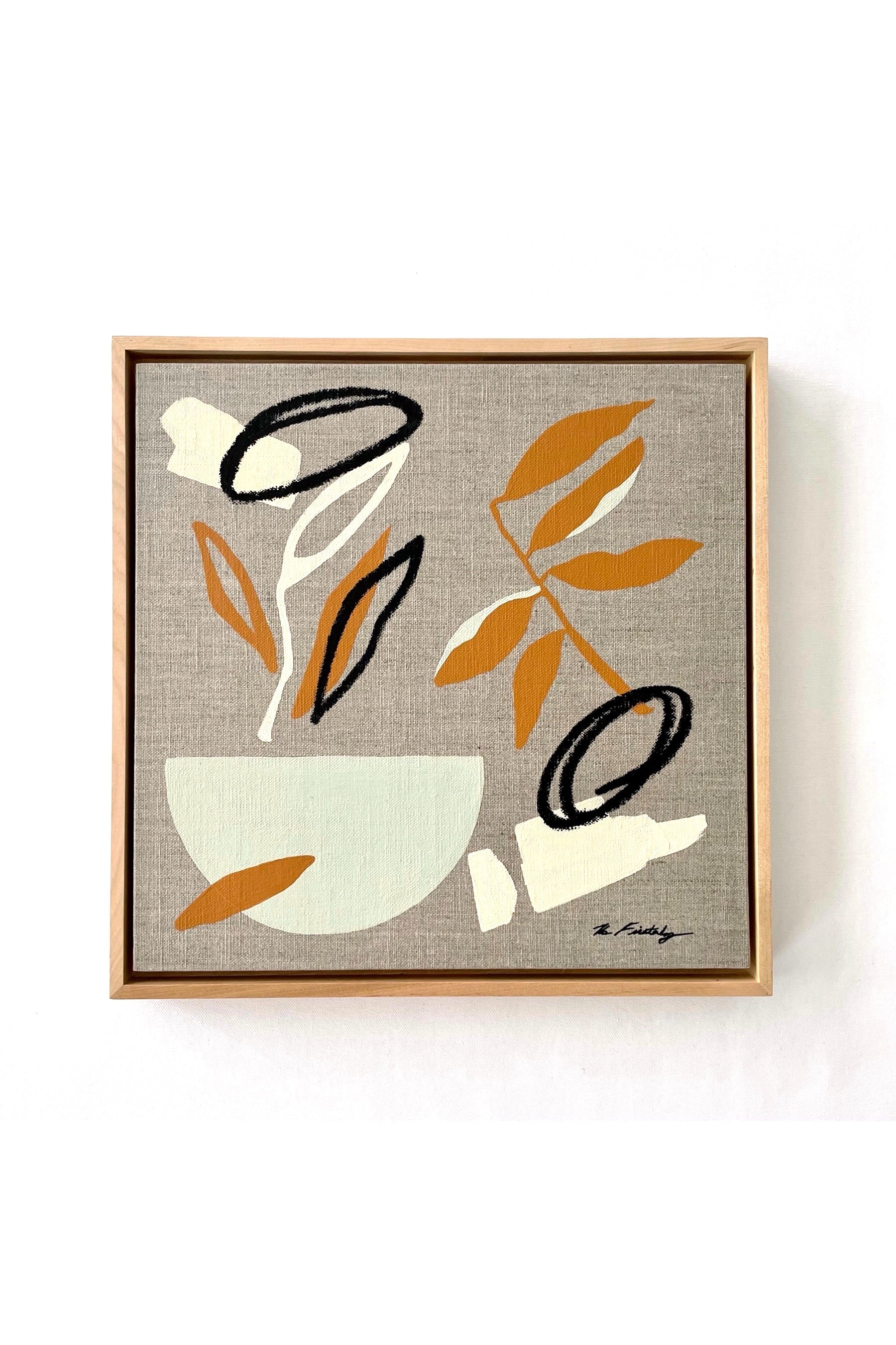 California artist Kara Firstenberger creates beautiful one of a kind mixed media paintings featuring abstract shapes and flora. Includes wood frame. Hand painted in Cardiff-by-the-Sea.